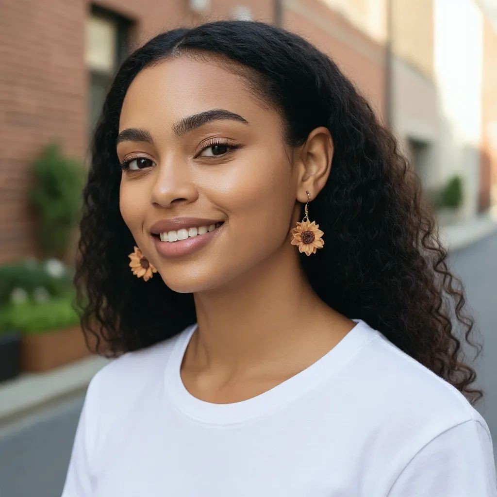 These Sunflower Dangle Clay Earrings bloom with rustic charm. Each flower is hand-sculpted with golden petals and a textured center for an authentic, dimensional feel. Lightweight and hypoallergenic, they’re ideal for everyday wear or gifting. A beautiful choice for fall fashion and handmade jewelry collectors.