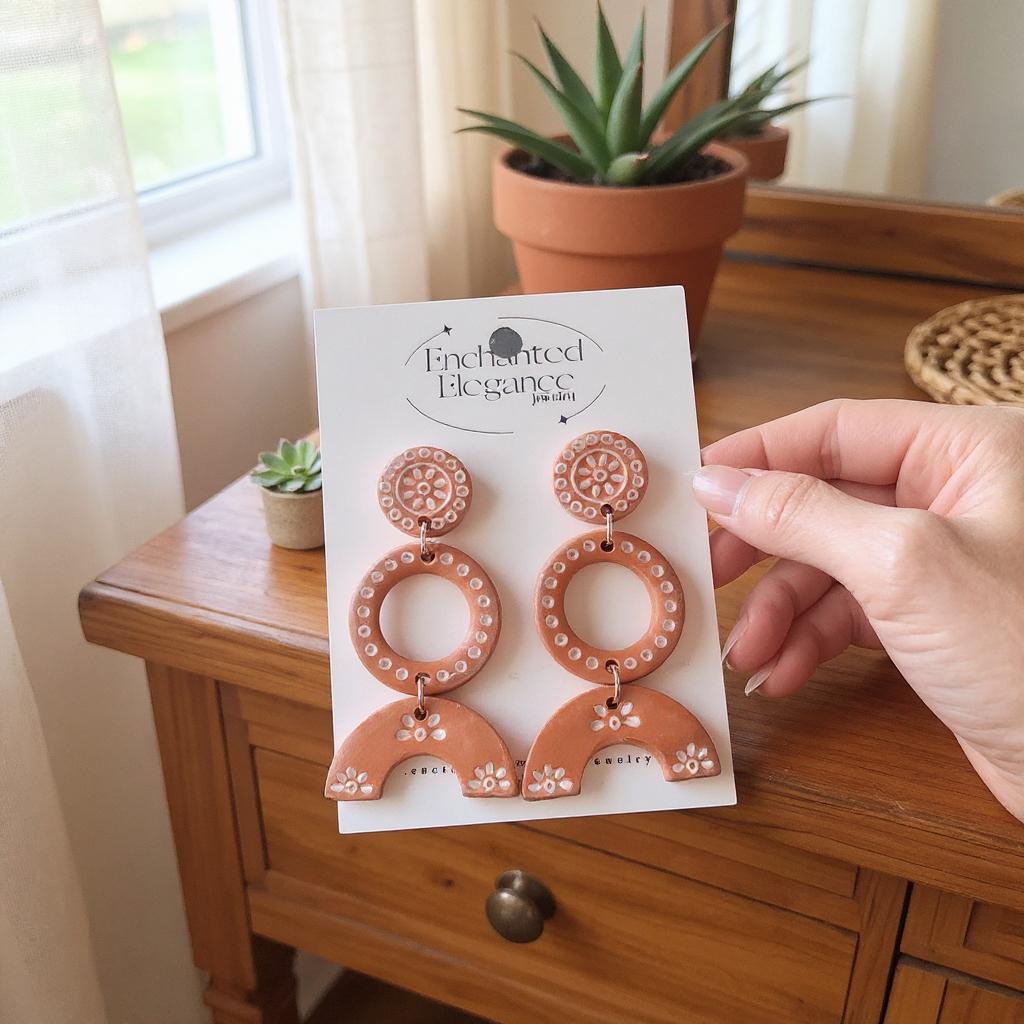 Inspired by desert tones and handcrafted texture, the Terra Cotta Boho Clay Earrings add a modern-boho twist to your jewelry collection. Their organic shape and earthy terracotta palette make them a standout piece for casual outfits or festival looks. A must-have accessory for lovers of eco-conscious, artistic design.