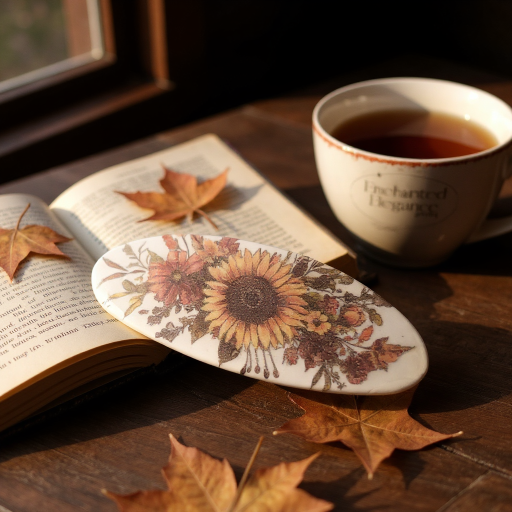 Capture the warmth of autumn with our Yellow Sunflower Hair Barrette. Featuring a vintage-inspired sunflower and floral design, this handmade piece adds rustic charm to your hairstyle. With a secure 4.1" French barrette closure, it's perfect for everyday wear, fall weddings, or cozy seasonal looks that celebrate handmade beauty.